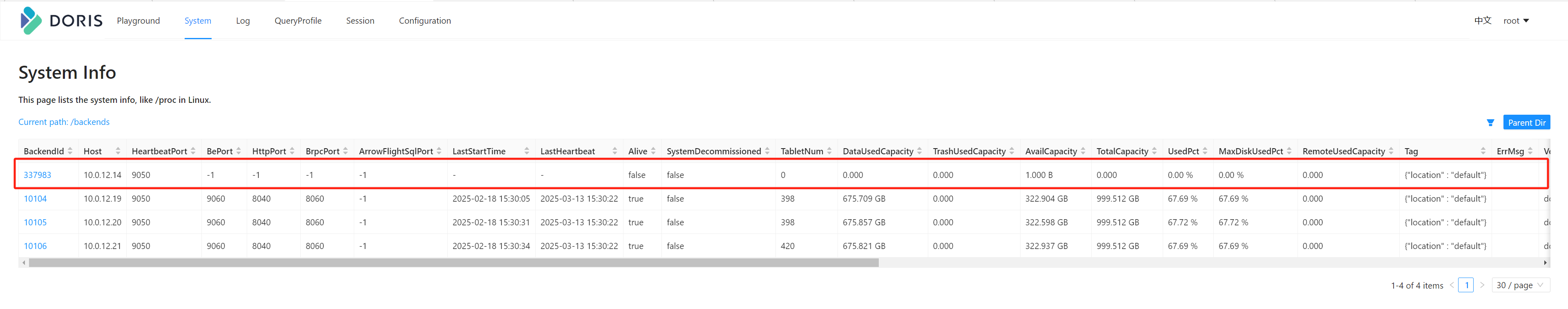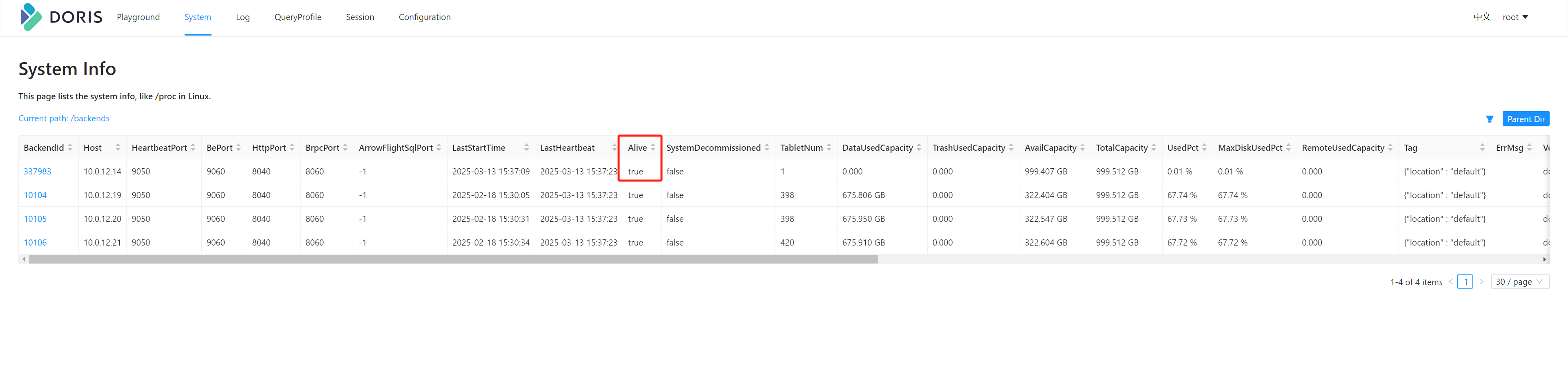 也可以通过 show backends 命令查看 BE 的状态。