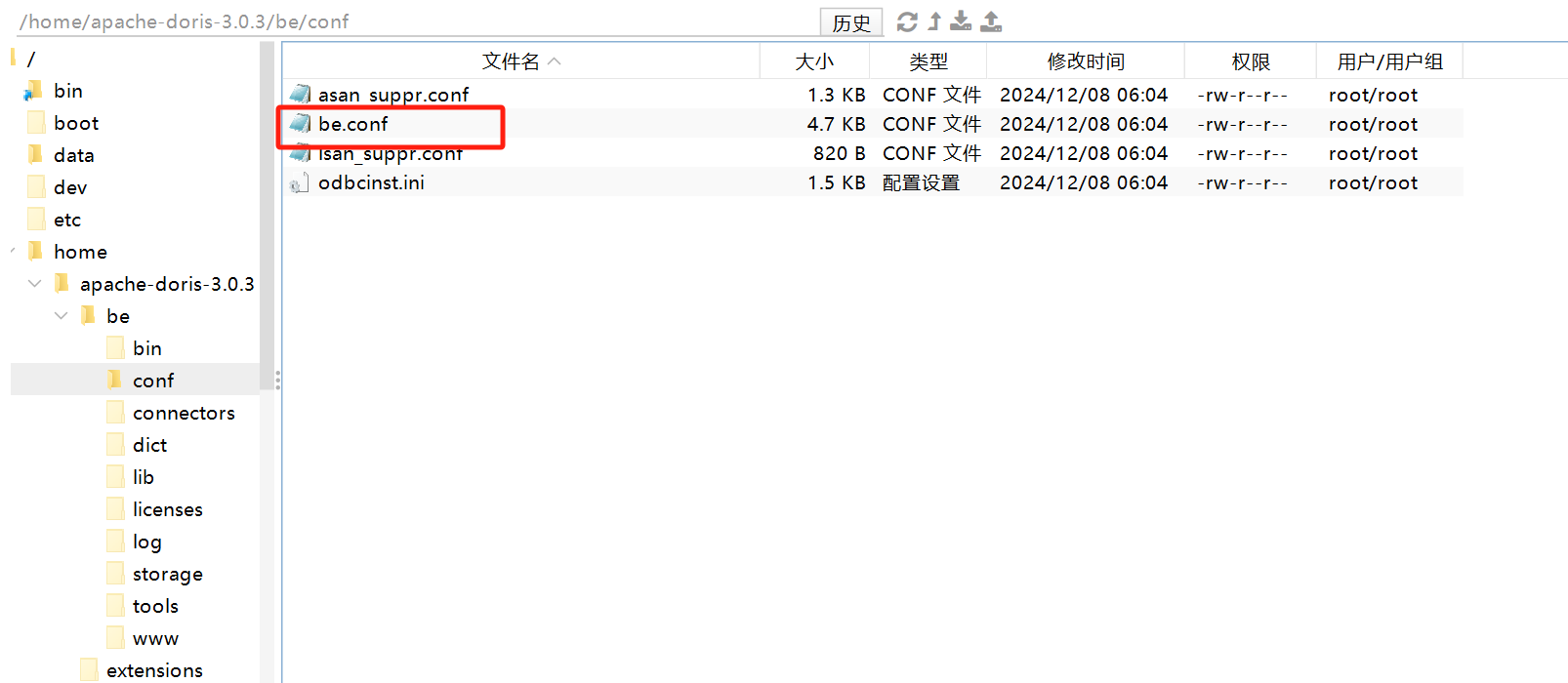 /home/apache-doris-3.0.3/be/bin/start_be.sh --daemon