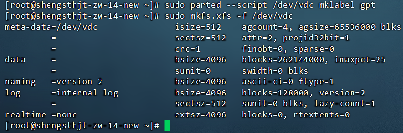 sudo mkfs.xfs -f /dev/vdc