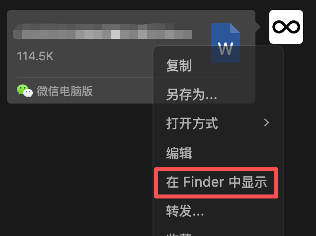 1. 在微信聊天记录中用任意一个文件右击在finder中显示,仅文件可以,图片和表情都不可以;