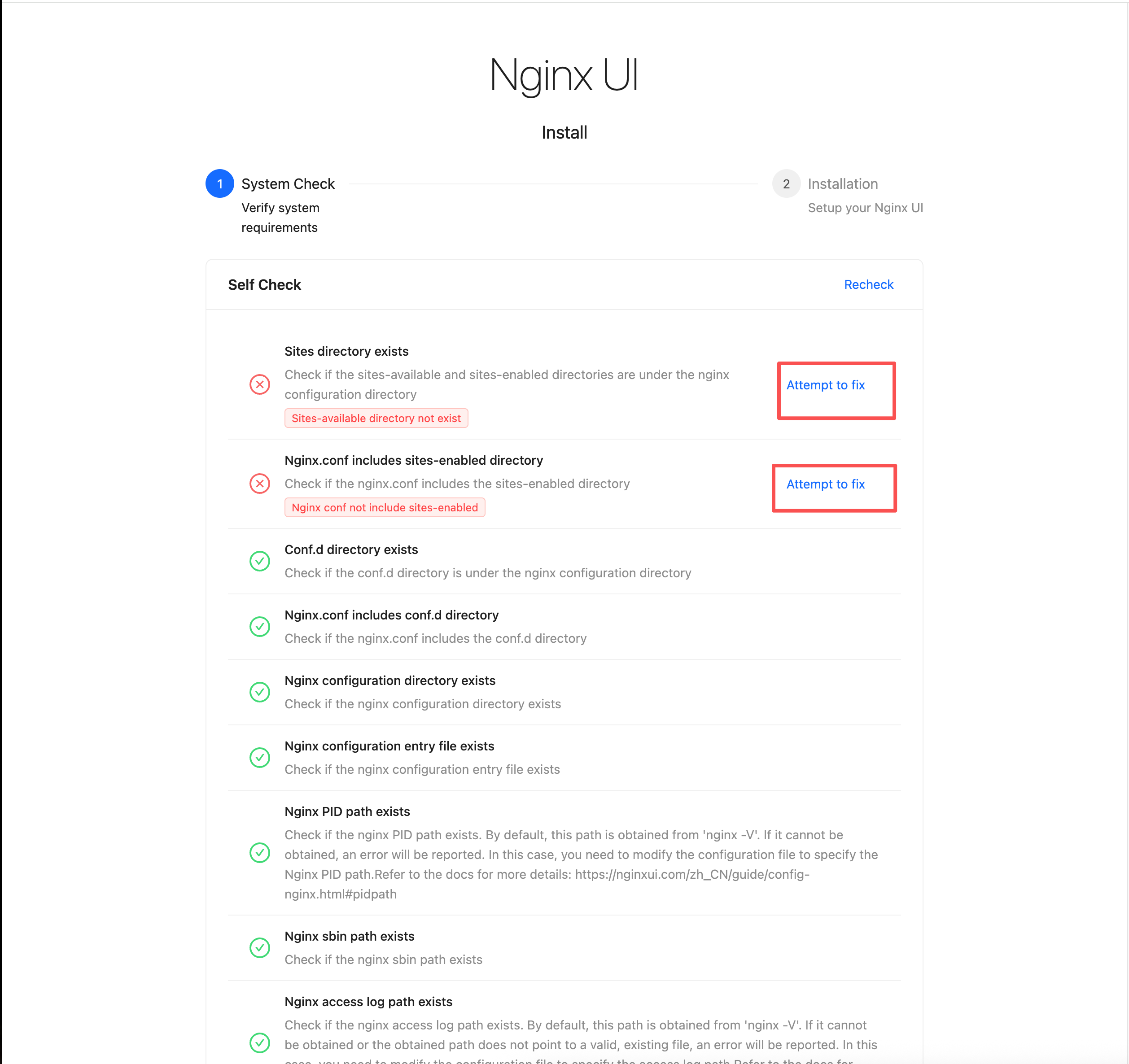 第一次运行 Nginx UI 时,请在浏览器中访问 http://<your_server_ip>:<listen_port> 完成后续配置。