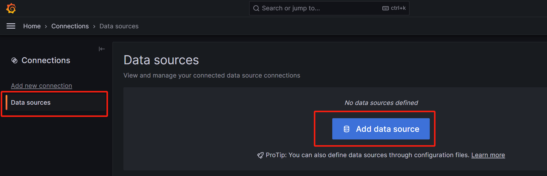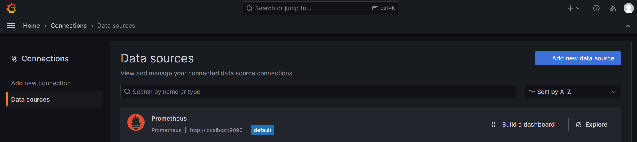 在连接 – 数据源 列表中可以查看已经添加的Prometheus数据源